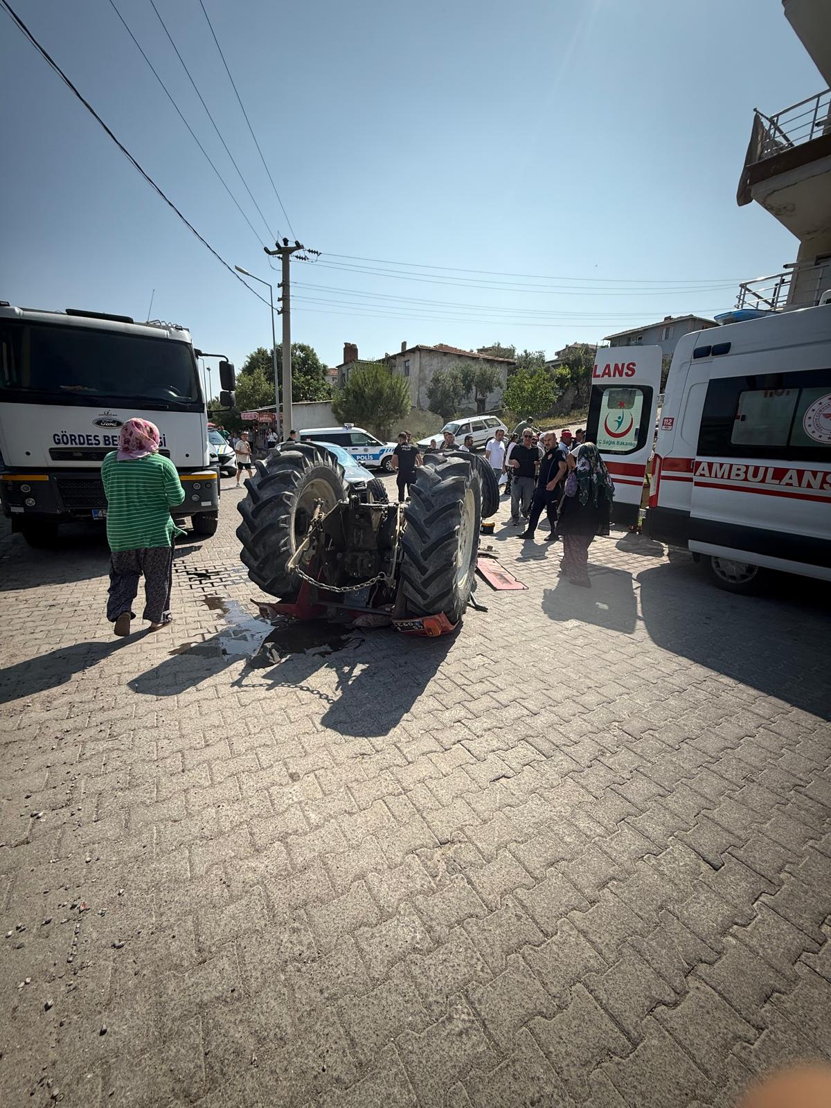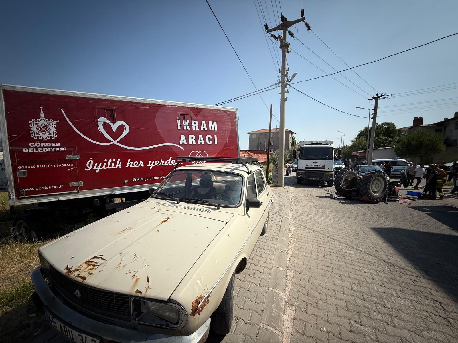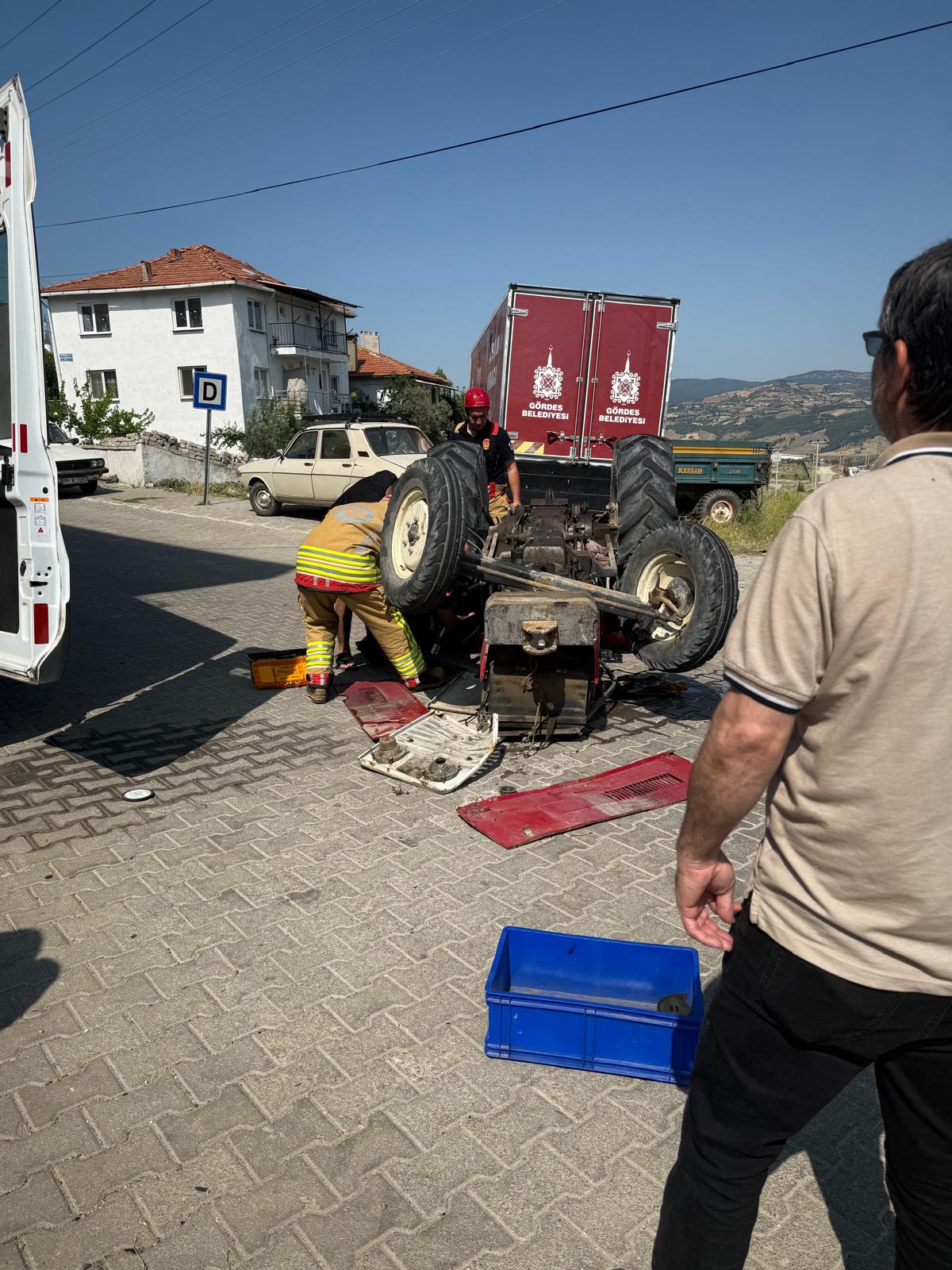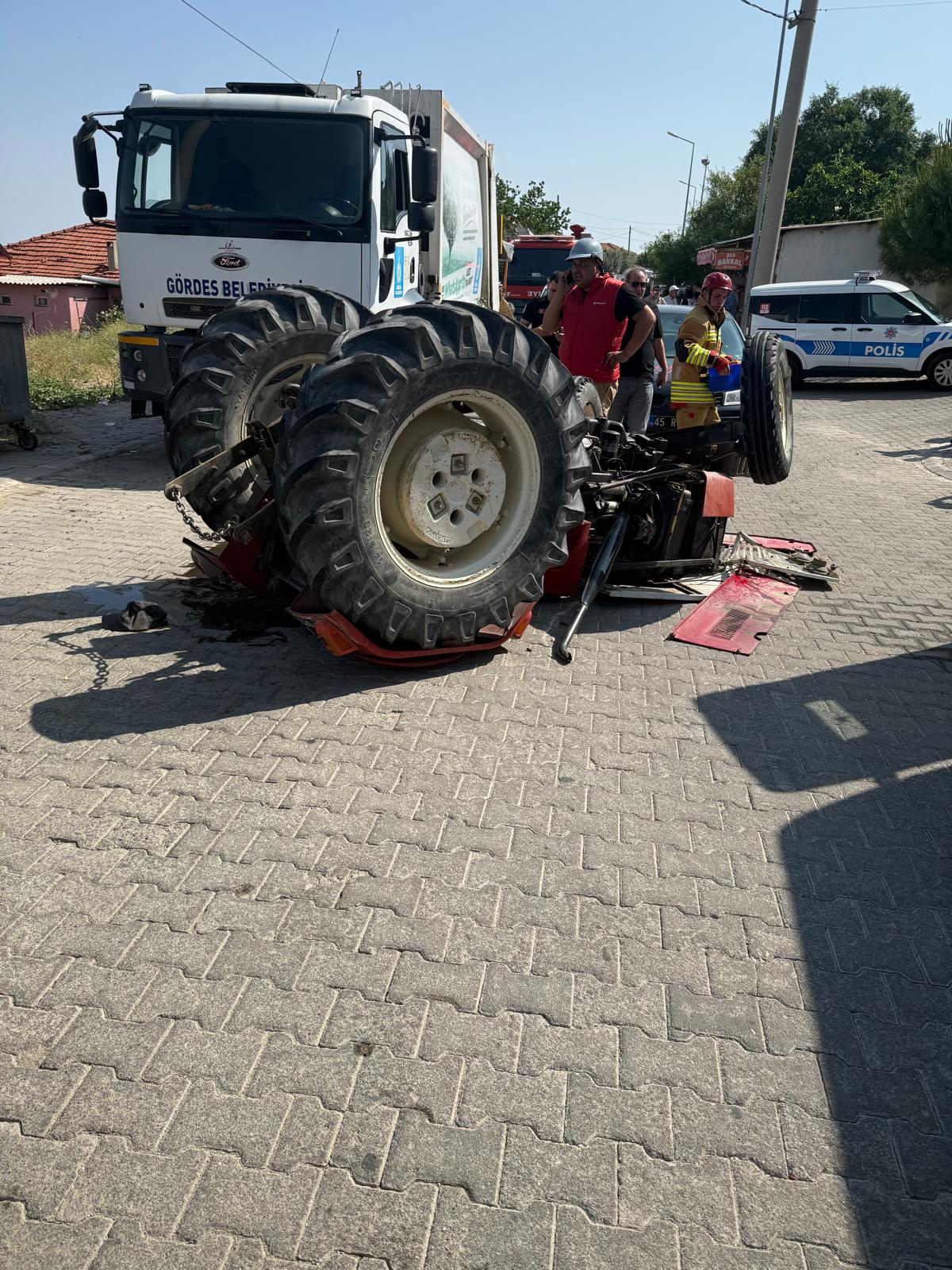 Bayramın birinci gününde meydana gelen kazanın ardından, ilçemiz Divan Mahallesi’nde bir traktör kazası daha yaşandı. Gördes Belediyesine ait olan ve belediye personeli Ekrem Akyol tarafından kullanılan 45 R 0933 plakalı ikram aracını taşıyan traktör, frenlerin tutmaması sonucu devrildi.