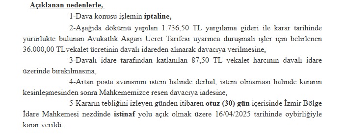 Ancak 5 Mayıs 2025 tarihinde mahkeme süreci tamamlanmış ve mahkeme Emrah Sürücü Kursu lehine karar vermişti. Mahkemenin bu kararına rağmen, iş yeri 16 Mayıs 2025 tarihinde, aynı gerekçelerle bir kez daha Gördes Belediyesi tarafından mühürlendi. İş yeri sahibi bu durumu, hukuki sürecin ve mahkeme kararlarının hiçe sayılması olarak değerlendiriyor.