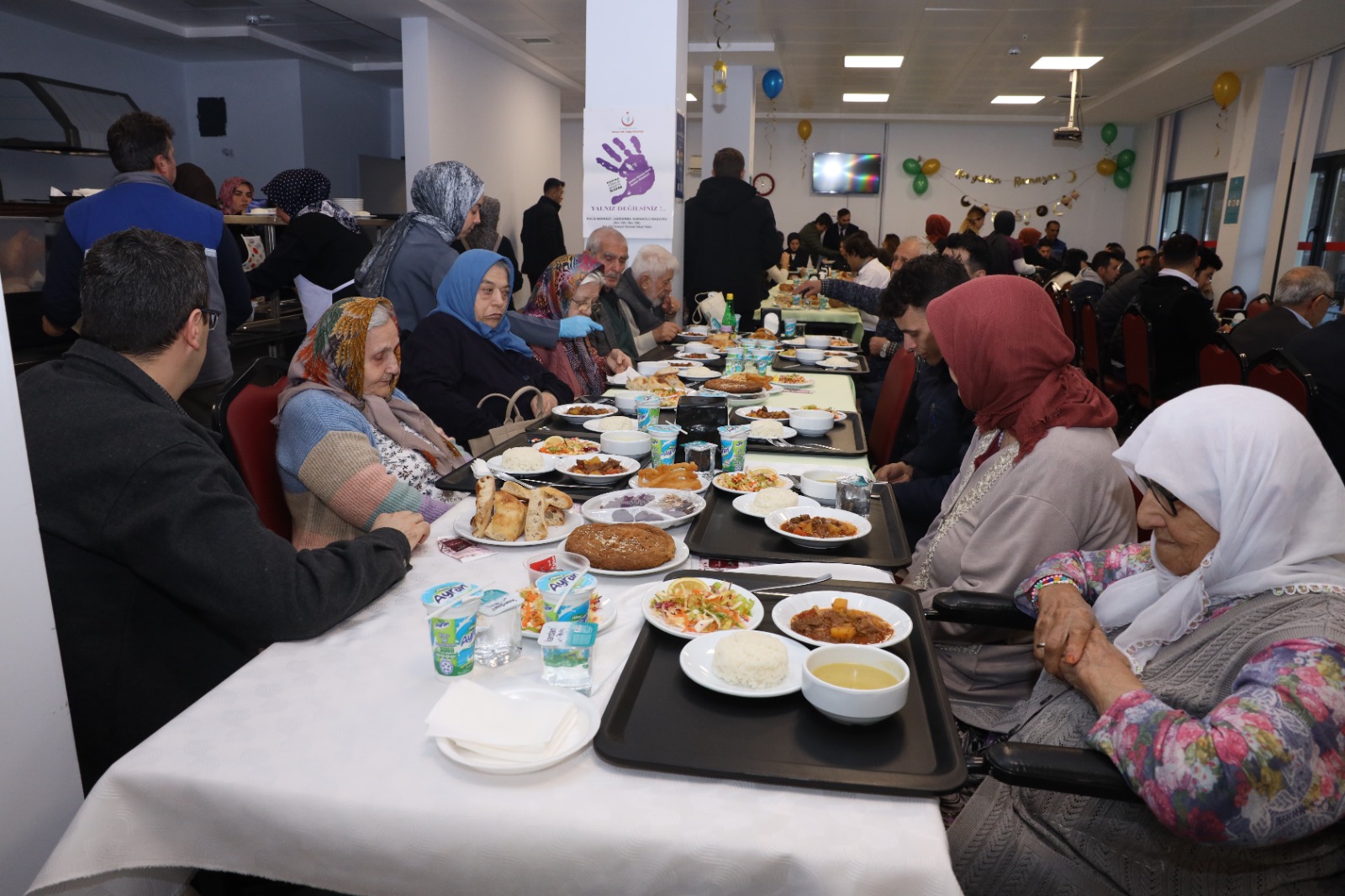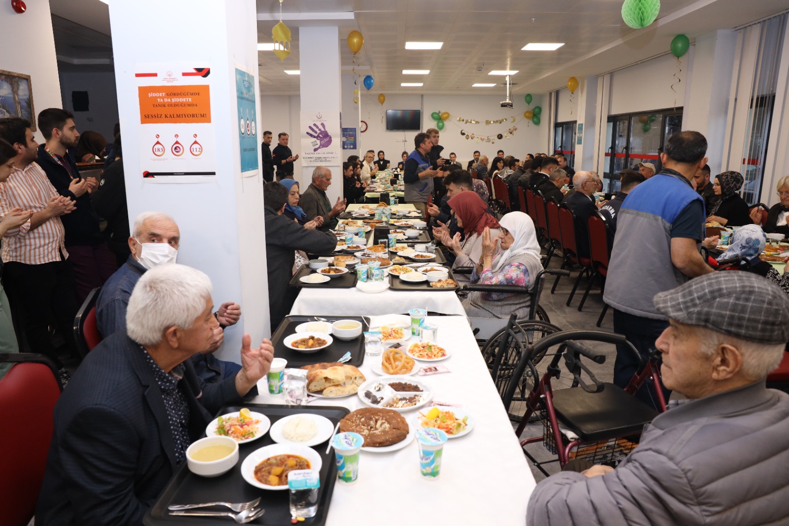 Yemekhane salonunda hazırlanan masalarda gelen huzurevi sakinleri iftar öncesi il müdürü Gültaş ve kaymakam Sakarya,ile bir süre sohbet etmesinden sonra top’un patlamasıyla oruçlar açıldı.Gördes Hafızlık Kuran Kursu hocası Mustafa Devrik ve öğrencileri ile kur-anı kerim tilaveti okumasından sonra