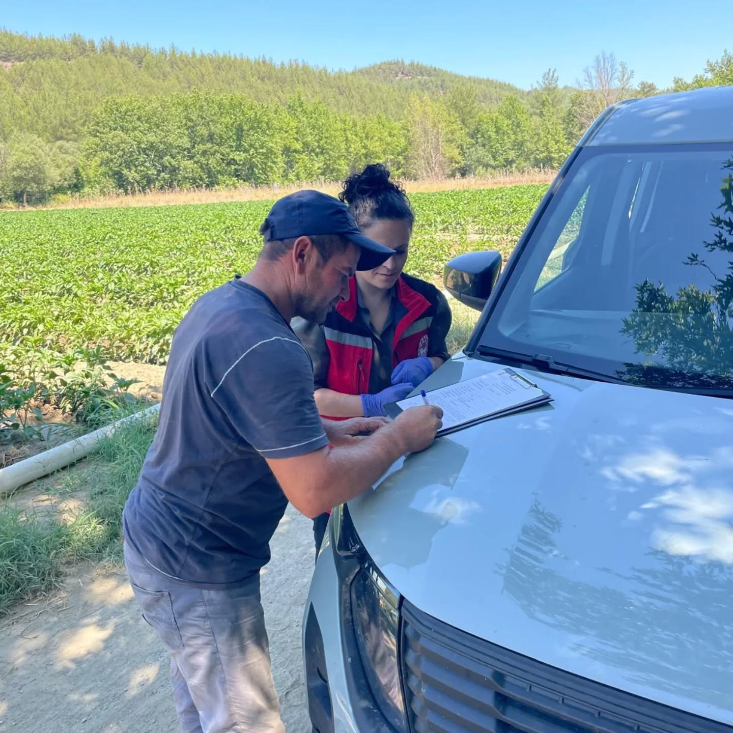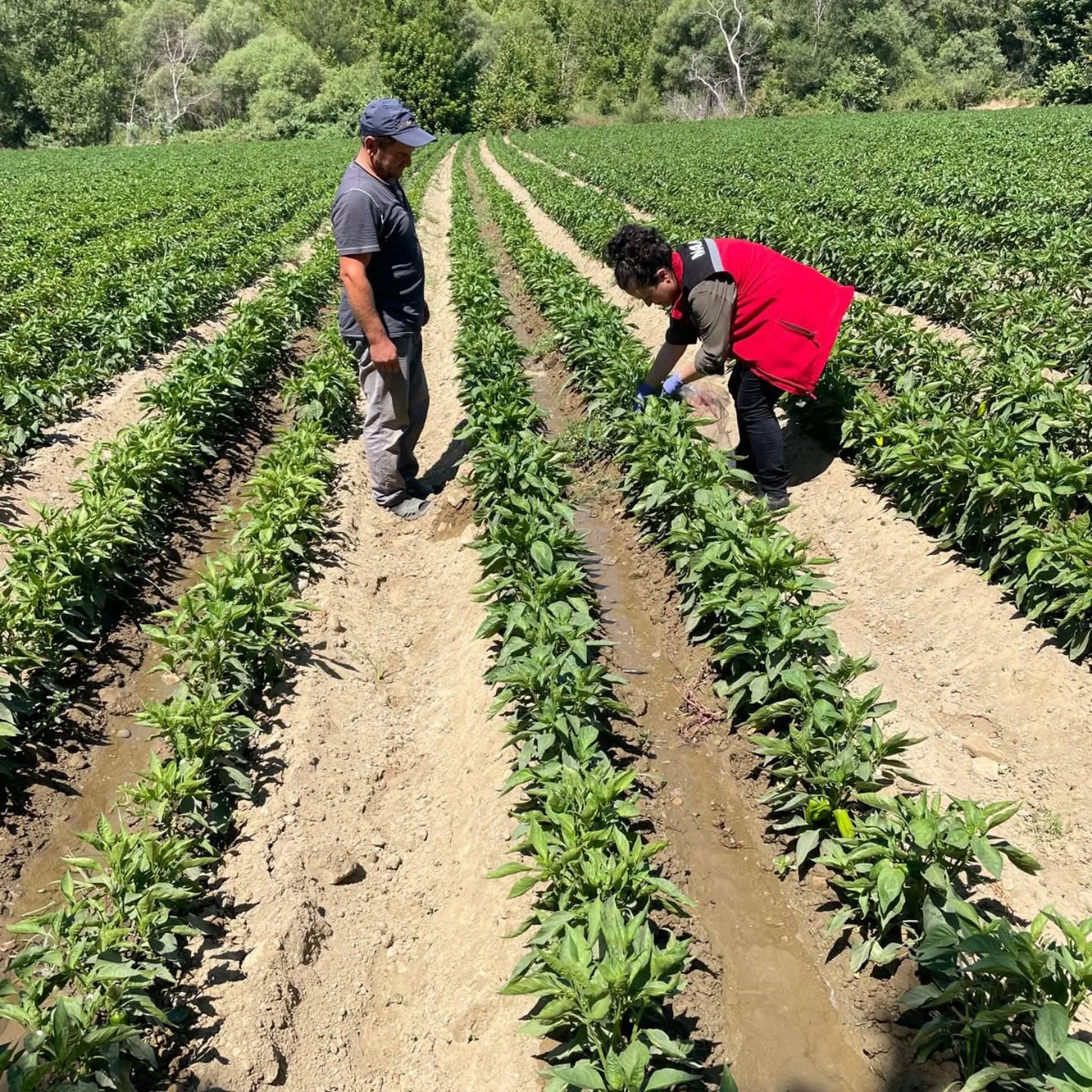 İlçe Tarım Müdürlüğü ekipleri, sahada yürüttükleri denetimlerde üreticilere doğru tarım uygulamaları konusunda bilgilendirme yaparken, özellikle bitki koruma ürünlerinin etiketinde belirtilen hasat aralığına uyulması gerektiğine dikkat çekiyor.