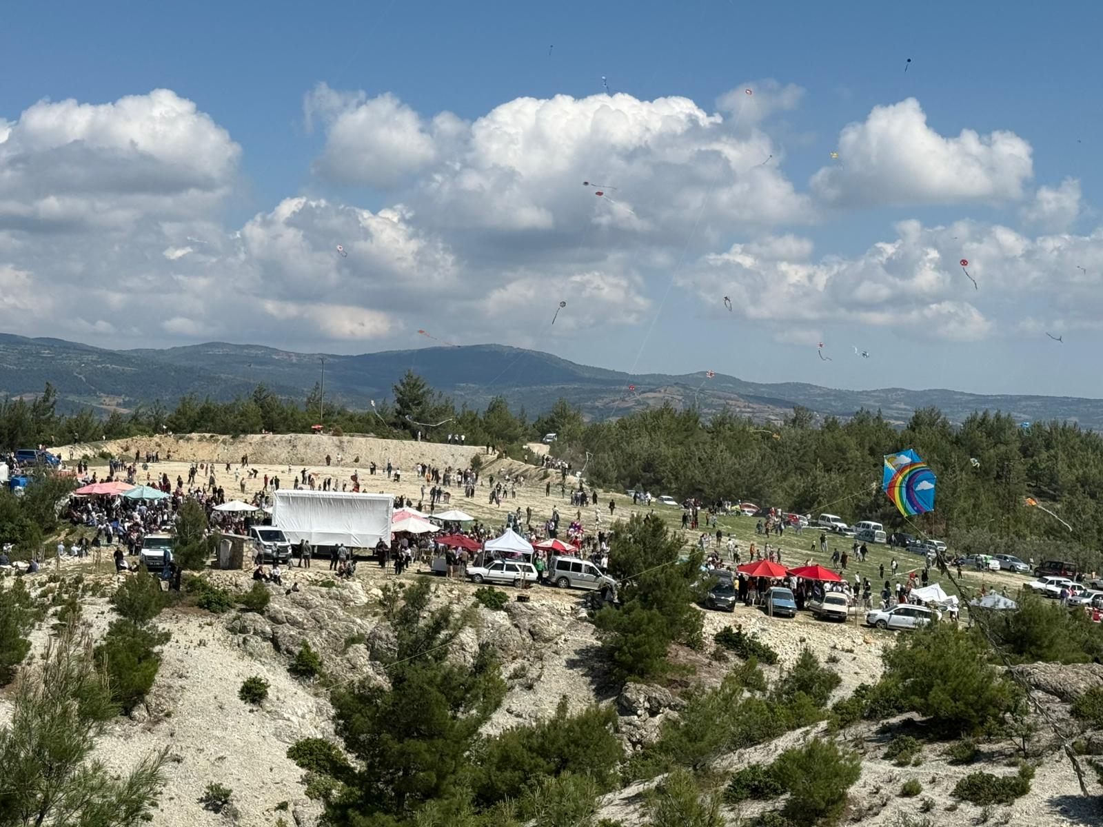 Şu an dağ eteklerinde uçurtmasını koşturan çocuklardan, gölgede gözleme keyfi yapan misafirlere kadar herkes bu güzel havanın ve şenliğin tadını çıkarıyor. Kadınlarımızın el emeğiyle hazırladığı gözlemeler, ayranlar ve mis gibi köy tatlıları yine ilgi odağı.